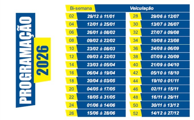 , defina quais os períodos serão os melhores para sua campanha e solicite a disponibilidade de pontos de acordo com o número de cada bi semana.